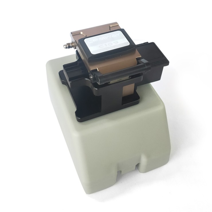 * Provides approximately 48,000 cleaves* Compact body& light weight* 250um Coated or 900um Buffer fiber* Singlemode or Multimode Use* 24 Position Rotatable and Replicable Blade* Model: C109* Applicable fibers: Singlemode or Multimode Use* Fiber Diameter: 125um* Coating Diameter: 250um - 900um* Typical Cleave Angle: 0.5 Degrees* Cleave Length: 5 - 20mm (Single Fiber - 0.25mm Coating), 10 - 20mm (Single Fiber - 0.9mm Coating)* Blade Life Time: 48,000 cleaves 2,000 per blade position)* Cleaver Dimensions: 62 x 60 x 60mm * Weight: 380g